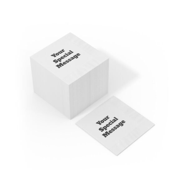 These soft, three-ply white coined napkins provide an excellent surface for you to print all your custom ideas. With a smooth texture and coined edge borders, these napkins are perfect for any social event like weddings, birthdays, and bar mitzvahs. Available in two sizes: Luncheon (6.5″ x 6.5″) and Beverage (4.8″ x 4.8″).